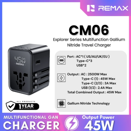 REMAX - CM06 Explorer 45W MultiFunctional Gallium Nitride Travel Charger