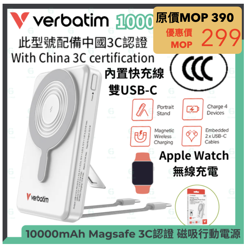 Verbatim Charge 'n' Go 2C LED螢幕 流動充電池 10000mAh 32273
