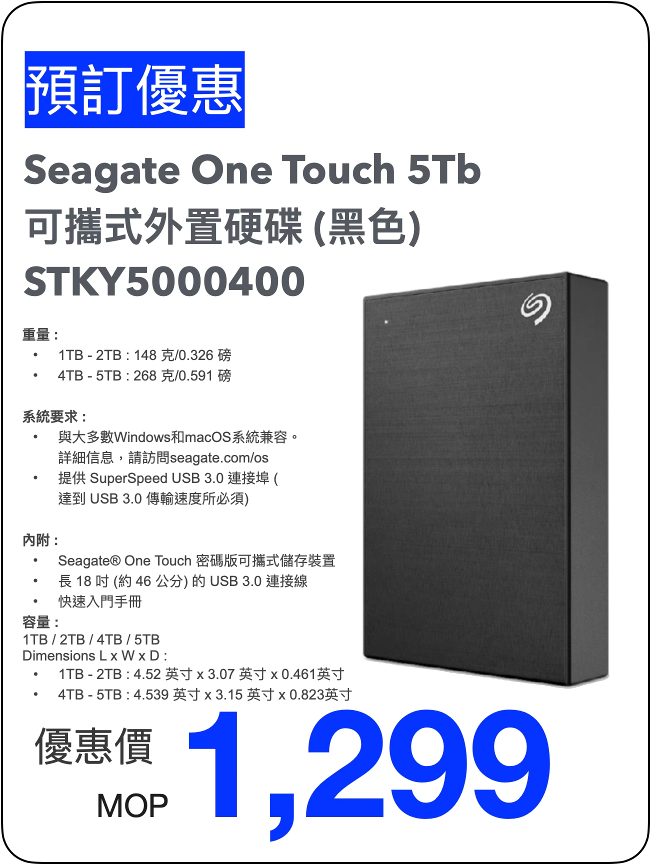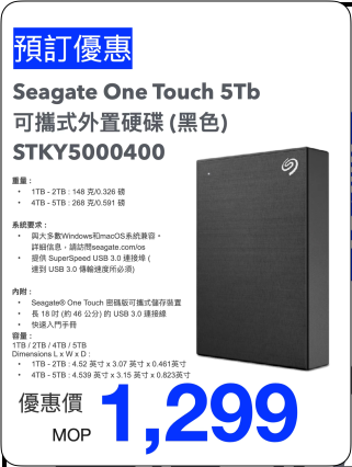 Seagate One Touch 可攜式外置硬碟 -5TB