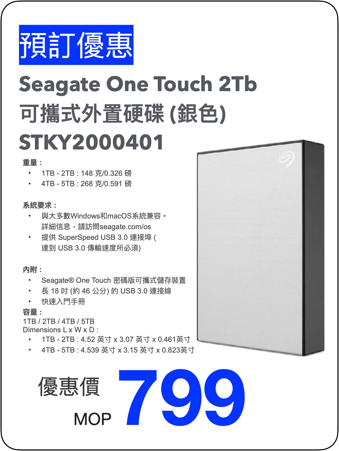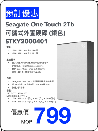 Seagate One Touch 可攜式外置硬碟 -2TB