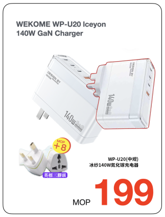 WEKOME - GaN 140W PD快充充電器 - 快充不傷機,快才有意義 - 多重保護,安全充電有保障 - 多快充協議,支援PD/QC等快充 - 冰爽充電,快充不發燙 - 超大功率三口,140W 充電 - 可折疊插腳,更便攜